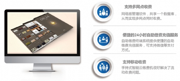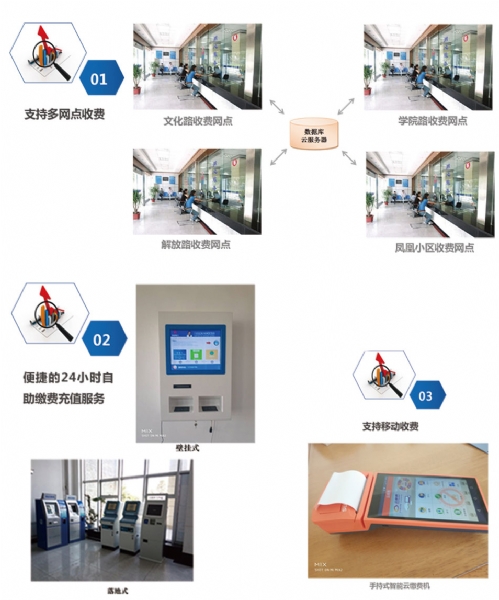 实现自助缴纳水费、电费;支付方式目前支持微信支付,可扩展支付宝和银联卡支付;可实现票 据打印。产品分为壁挂式、落地式等;可实现24小时无人值守工作;