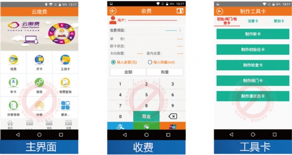 可实现移动便捷的收取水电费;可实现用户卡补卡功能;可实现换表功能;可实现制作工具卡功能;支付方式支持微信支付,支付宝支付和银联支付;